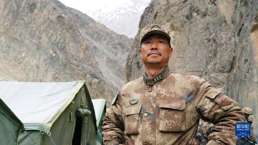 祁发宝在加勒万河谷执勤时留影(资料照片)。新华社发(郭帅 摄)