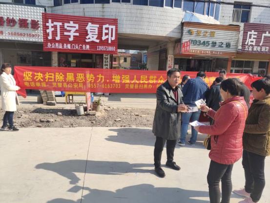 (3月22日,在局门前莱迪购物街大润发超市对面开展主题为坚决扫除黑恶势力增强人民群众获得感幸福感安全感的宣传活动)