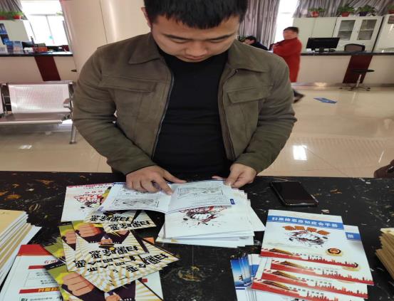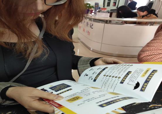 (不动产登记中心在业务受理窗口排放宣传材料,对办理业务群众进行宣传)