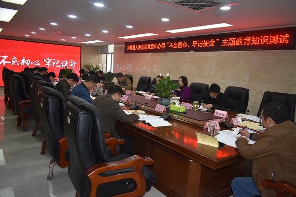 为扎实推进“不忘初心、牢记使命”主题教育往深里走、往心里走、往实里走,检验党员领导干部理论学习成效, 11月11日下午,灵璧县法院对全体党员进行 “不忘初心、牢记使命”主题教育基础知识测试,6个支部党员和中心组成员参加测试 。
