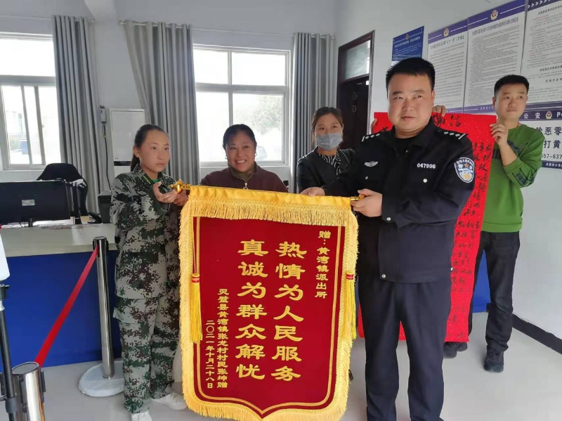 2021年10月28日,张某无比激动,携孙女到黄湾派出所办理手续并且办理居民身份证,当张某家人拿到户口本的那一刻,心里更加充满感激之情,一面鲜红的锦旗和一份载满感激之心的感谢信,递给副所长胡秀乐,充分展示出民警爱人民,警民一家亲的鱼水情,也是对黄湾派出所为人民办实事的充分肯定。
