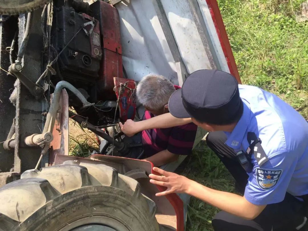 5月24日上午,浍沟派出所接到一起警情:辖区S303省道路边,一拖拉机侧翻沟内,驾驶员被困。