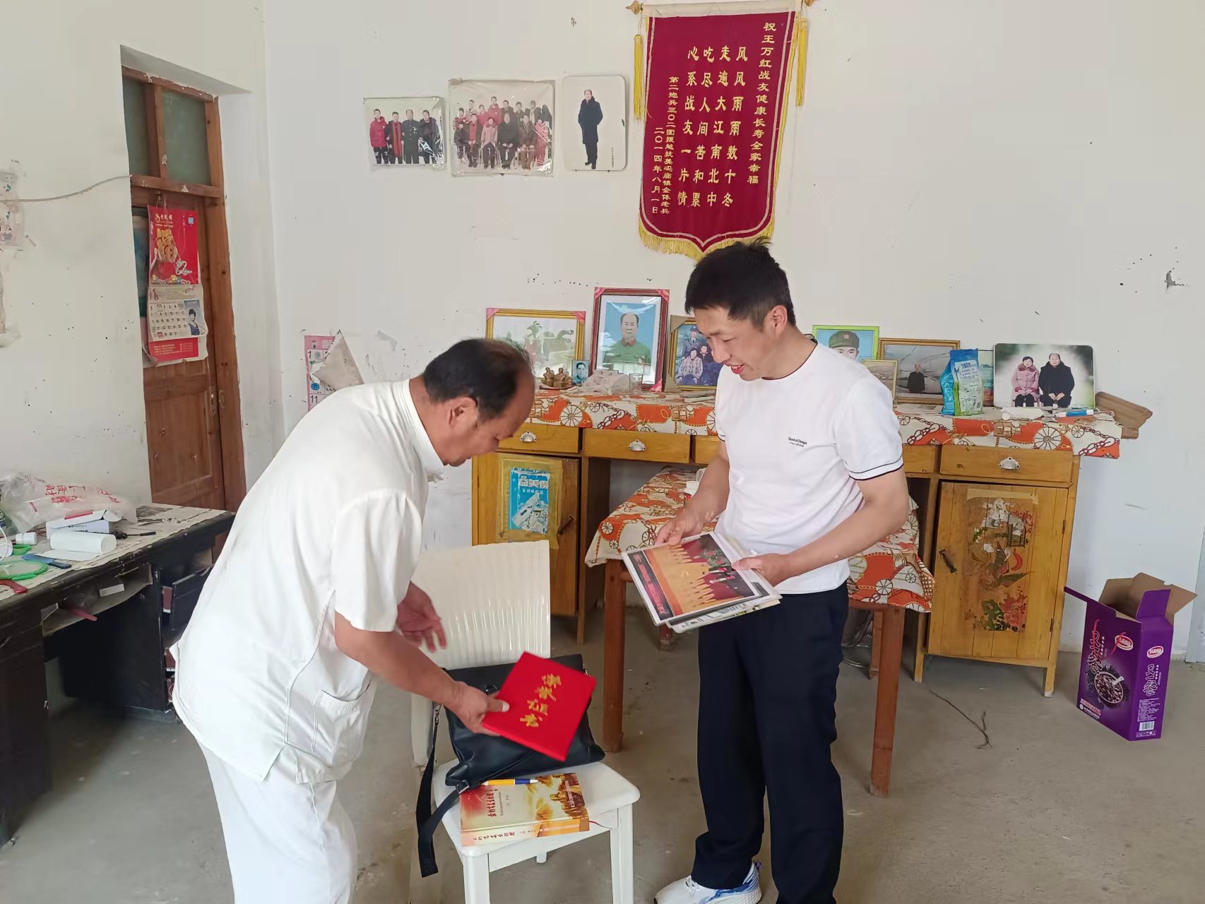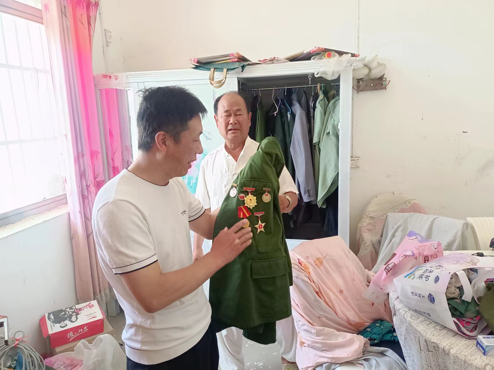 在这端午节日里,张彦斌副所长来到禅堂镇八一村探望老兵王万红。王万红同志曾参加过对越自卫战争,虽已高龄,但仍精神矍铄。王红万同志非常健谈,向大家讲述2019年受越南政府邀请,做为代表团参战老兵团长身份,随习主席参加越南战争访问活动,同时也是灵璧几个乡镇红色传承讲解员。