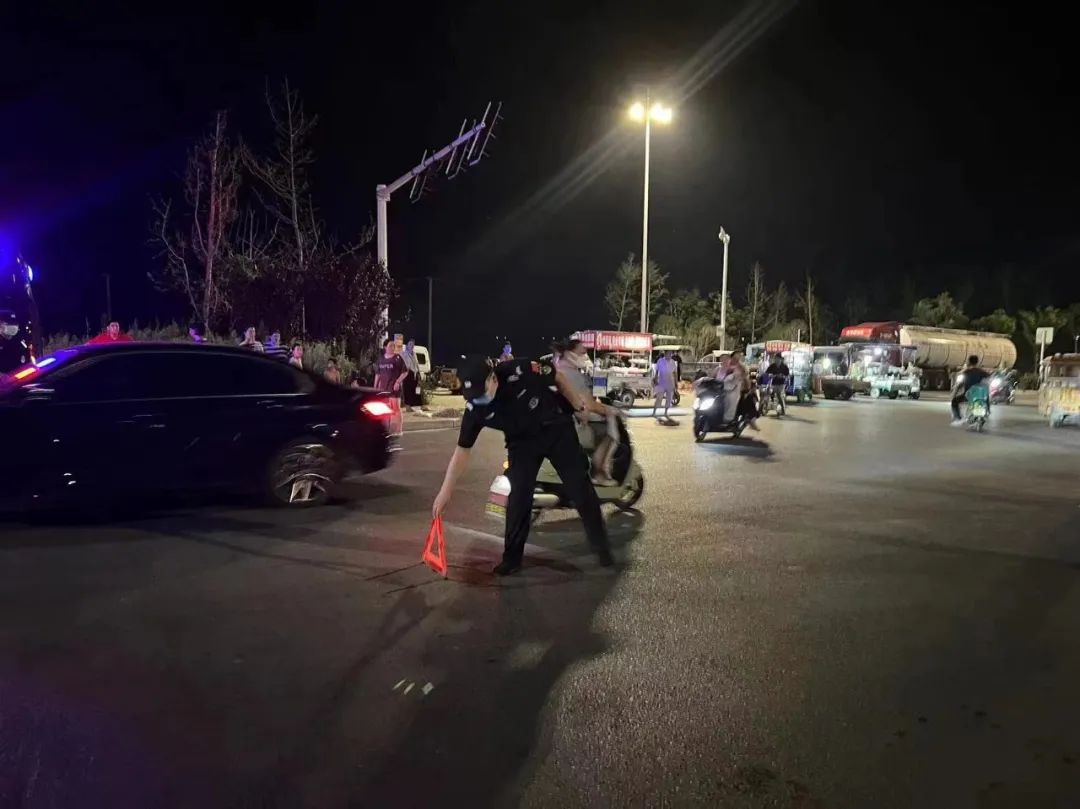 事发时正值下班高峰期,过往车辆和行人较多,为避免发生二次事故和车辆拥堵,巡逻组当即安排队员对道路秩序进行维护,疏散围观群众,摆放三角架,并第一时间联系指挥中心通知事故组前来处置。待事故组勘察结束后,巡逻组继续执行巡逻任务。