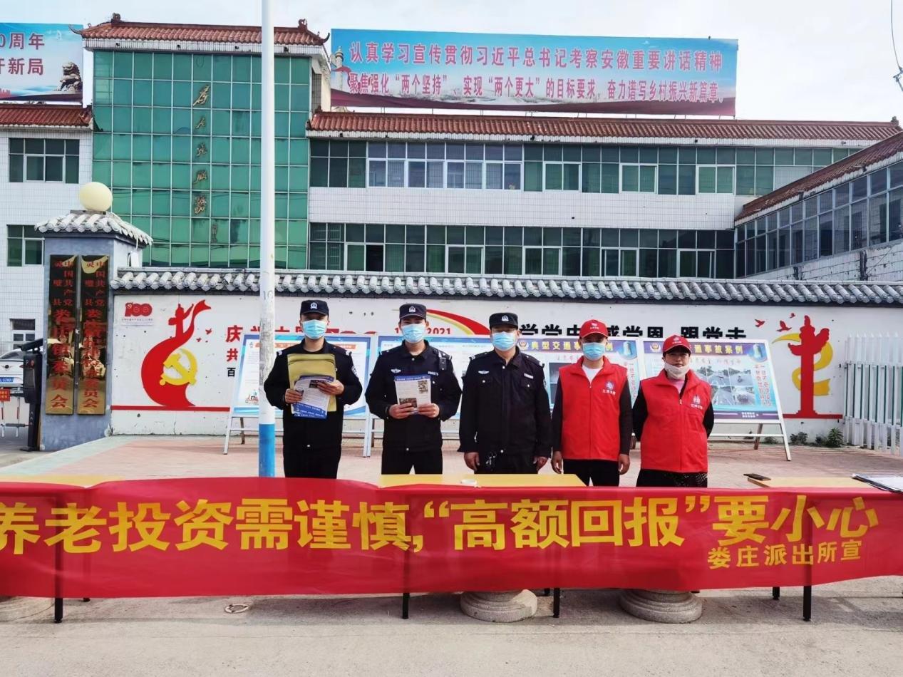 为进一步增强人民的安全防范意识,确保人民群众的财产权不受侵犯,切实维护广大居民合法权益,及时消除潜在隐患,近日,灵璧县公安局娄庄派出所组织民警、辅警、“江淮义警”进企业、上街头、上墙角,多措并举扎实开展防范经济违法犯罪宣传活动,提升人民群众识别、防范经济犯罪的意识和能力,握紧百姓钱袋。
