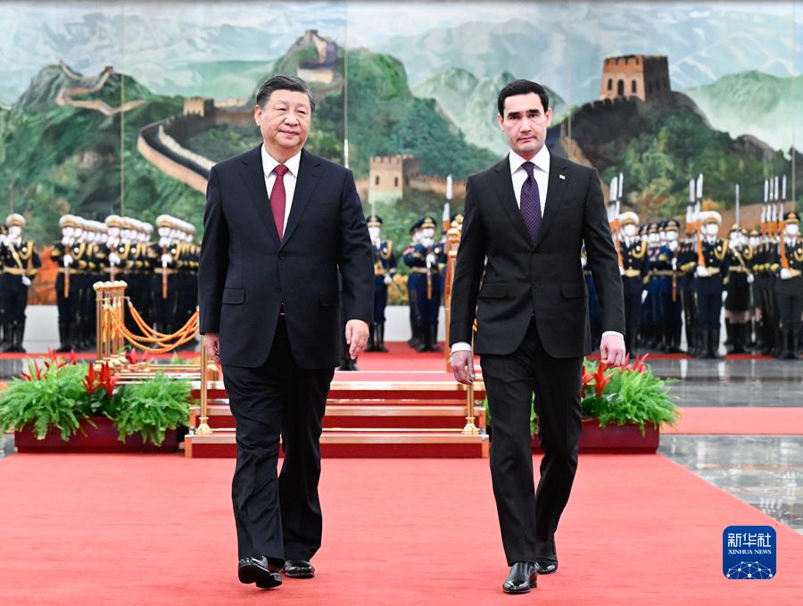 会谈前,习近平在人民大会堂北大厅为谢尔达尔·别尔德穆哈梅多夫举行欢迎仪式。
