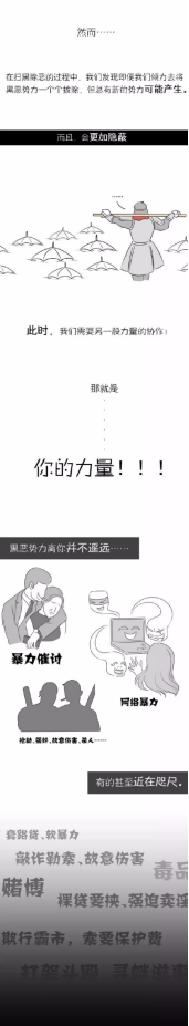 扫黑除恶没有旁观者,你我都是践行人。让我们积极行动起来,从自身做起,从现在做起,举报黑恶势力,打击黑恶势力,为建设幸福美好生活贡献力量!