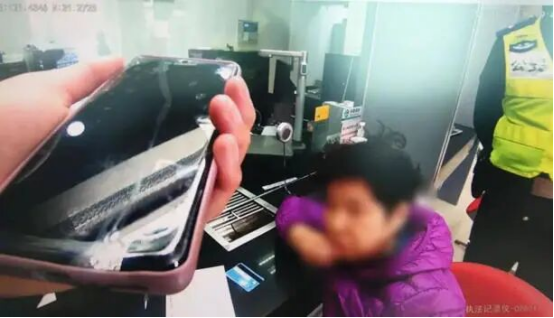 图为民警在银行劝阻老人转账(静安警方供图,下同)