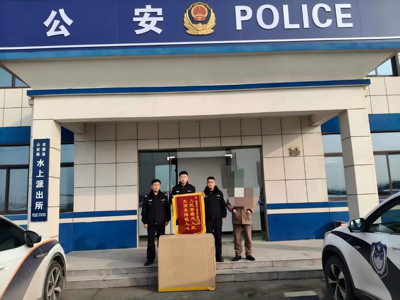 为表达谢意,孙先生专程赶到水上派出所,将致谢锦旗送到民警手中。