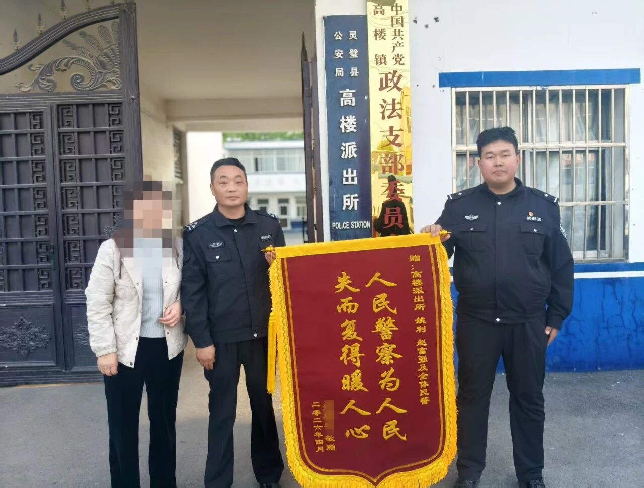 为向公安机关表达诚挚谢意,姚女士专程来到高楼派出所,将印有“人民警察为人民 失而复得暖人心”的锦旗送到民警手中。