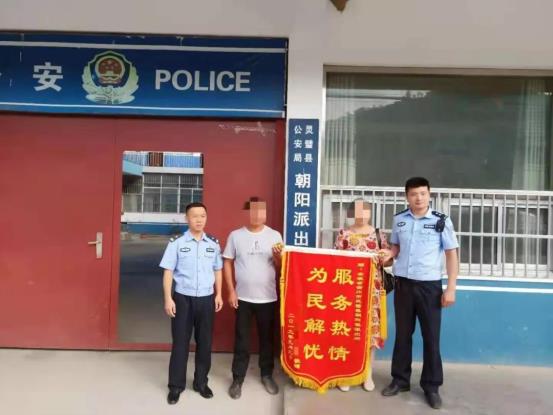 9月15日,市民刘女士将一面印有“服务热情 为民解忧”的锦旗,送到朝阳派出所民警手里,感谢民警帮她找到失散多年的妹妹。