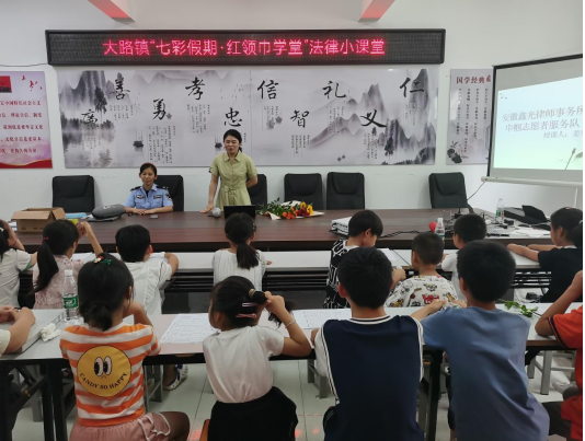 为增强未成年人的防范意识和自我保护能力,强化未成年人的法治观念,营造未成年人健康成长的良好氛围,7月19日,灵璧县大路镇司法所联合镇团委,依托“七彩假期·红领巾学堂”载体,邀请安徽鑫光律师事务所律师,为辖区留守儿童带来了一堂欢快且生动的普法课。