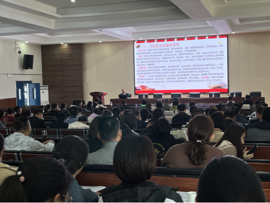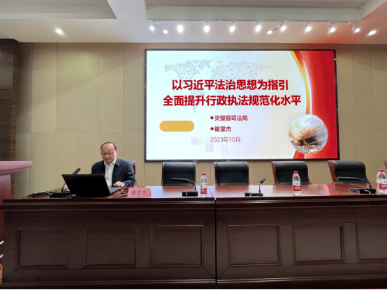 为规范执法行为,提升行政执法人员依法行政水平,2023年10月16日上午,灵璧县司法局应邀对全县乡镇综合执法新入职人员以《以习近平法治思想为指引全面提升行政执法规范化水平》为题进行岗前培训。