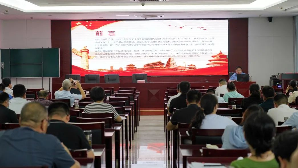 课堂上,闫海涛以深刻领悟习近平总书记关于加强监督的重要论述为切入点,详细介绍了检察机关“四大检察”“十大业务”的法律监督总体布局,全面细致解读了《意见》主要内容、核心要义以及省委实施意见和市委重点工作安排,并围绕助力平安灵璧、法治灵璧建设深刻阐述了县检察院贯彻落实中共中央《意见》、提升新时代法律监督工作水平的具体举措。