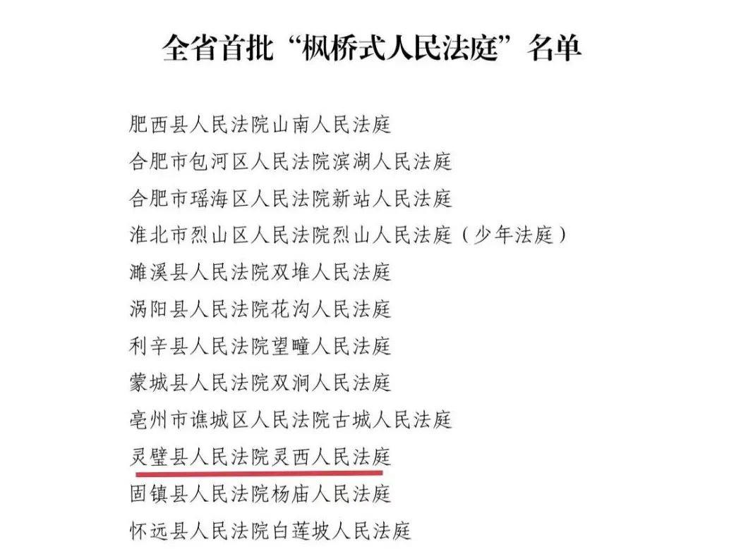 近日,安徽省高级人民法院公布了全省首批“枫桥式人民法庭”名单,灵璧县人民法院灵西人民法庭榜上有名,全市仅此基层人民法庭获此殊