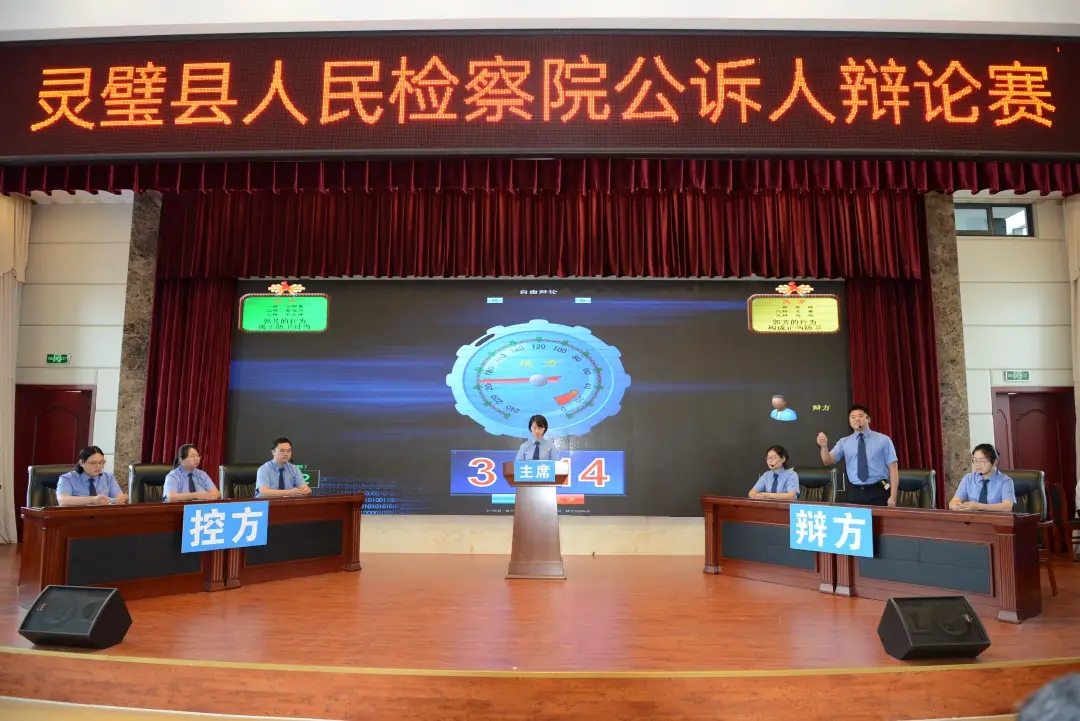 为做优刑事检察业务,提升年轻干警逻辑思维、语言表达、团队协作等能力,激发干警的工作热情,锤炼业务素质,9月3日下午,灵璧县人民检察院成功举办公诉人辩论赛。12名青年员额检察官及检察官助理组成4支队伍,围绕“郭某某遇强奸勒死施暴男子是否属于正当防卫”“刘某某卖刀给行凶者是否构成故意伤害罪的帮助犯”两个模拟案例,采取三对三团队辩论模式,进行了两场别开生面的辩论。