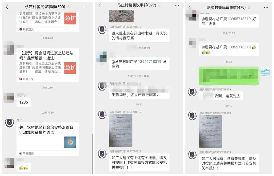 2 月 15 日,宿州市公安局向社会发布《关于农村地区社会治安整治百日行动线索征集的通告》,县局各单位结合“网上警民议事厅”“一村一警”工作,在辖区重点街区、村镇集市口等醒目位置张贴《关于在全市范围内开展农村地区社会治安专项整治百日行动的通告》的海报。同时,在“警民议事群”将“百日行动”作为每日法制宣传、提醒告知和便民服务的重要内容,加大宣传频次、广泛积极动员,不断提升群众知晓率、参与度,全面加强农村地区社会治安整体防控,为农村地区营造良好的社会治安环境。