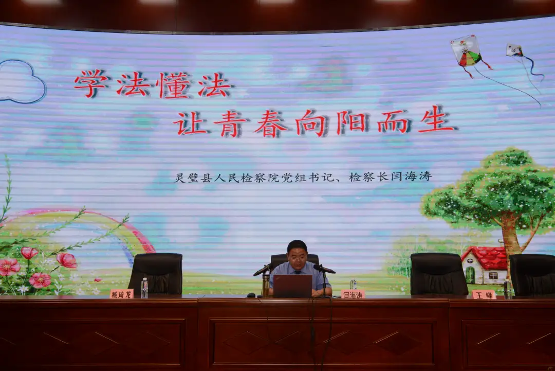 9月16 日,灵璧县人民检察院党组书记、检察长闫海涛以“法治副校长”的身份来到灵璧中学,为该校师生送去以《学法 懂法 让青春向阳而生》为题的法治讲座,这也是灵璧县人民检察院联合灵璧县教体局,在灵璧县开展的秋季开学第一课普法进学校的第一堂法治课。