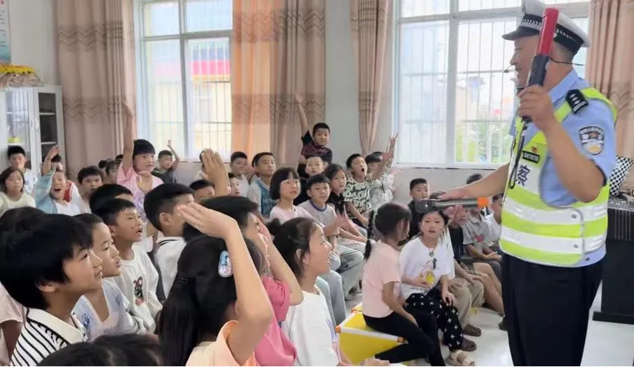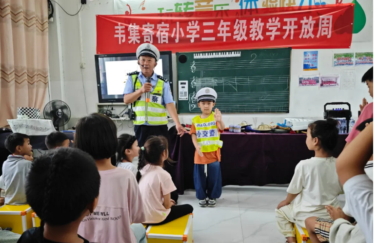 在秋季开学之际,灵璧交警走进韦集寄宿小学开展“开学第一课,交通安全进校园”系列宣讲活动,向小同学们宣讲安全出行知识。