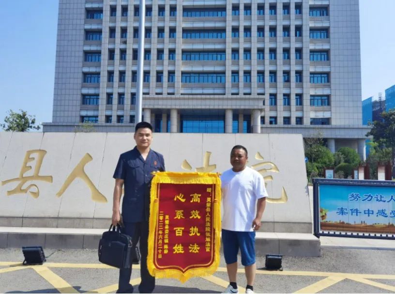 6月20日,申请人陈某将一面“高效执法,心系百姓”的锦旗送至灵璧县人民法院张旭法官助理手中,以感谢其高效的执行,助其顺利拿到了执行款。