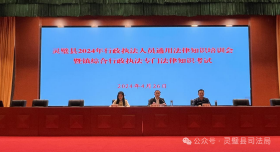 为深入学习贯彻习近平法治思想,全面提升行政执法质量和效能,确保镇赋权事项稳妥推进。2024年4月26日,灵璧县司法局联合县委编办、县委党校成功举办2024年度行政执法人员通用法律知识培训班暨镇综合行政执法专门法律知识考试。县政府副县长张颂军出席会议并讲话,全县各镇已持证和新申领执法证人员,县直各行政执法单位法制股负责人、执法业务骨干,各司法所所长,共计350余人参加培训。