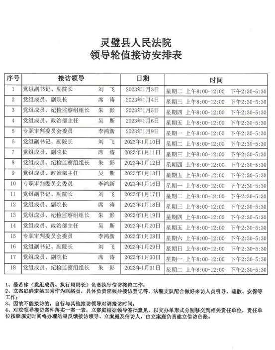 灵璧县人民法院2023年1月领导接访公示