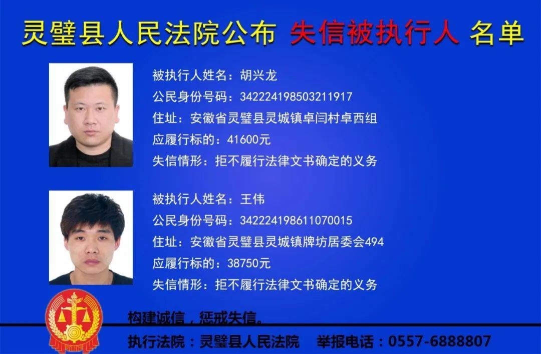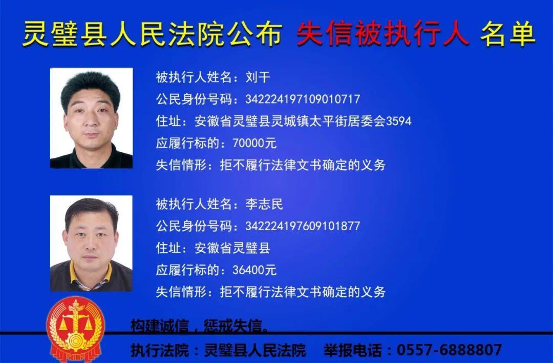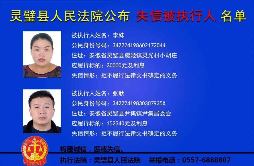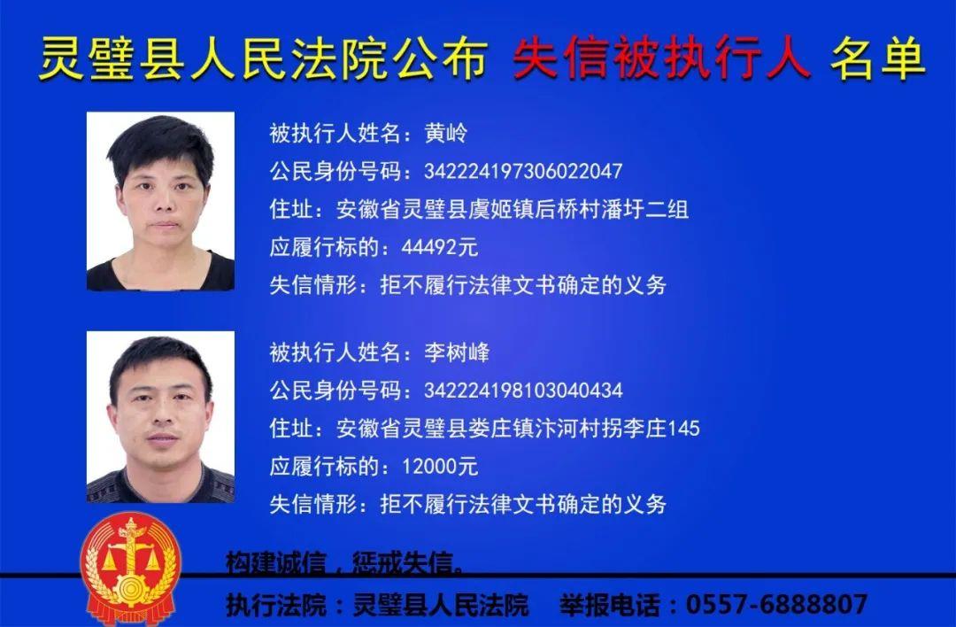 灵璧县法院公布失信被执行人名单