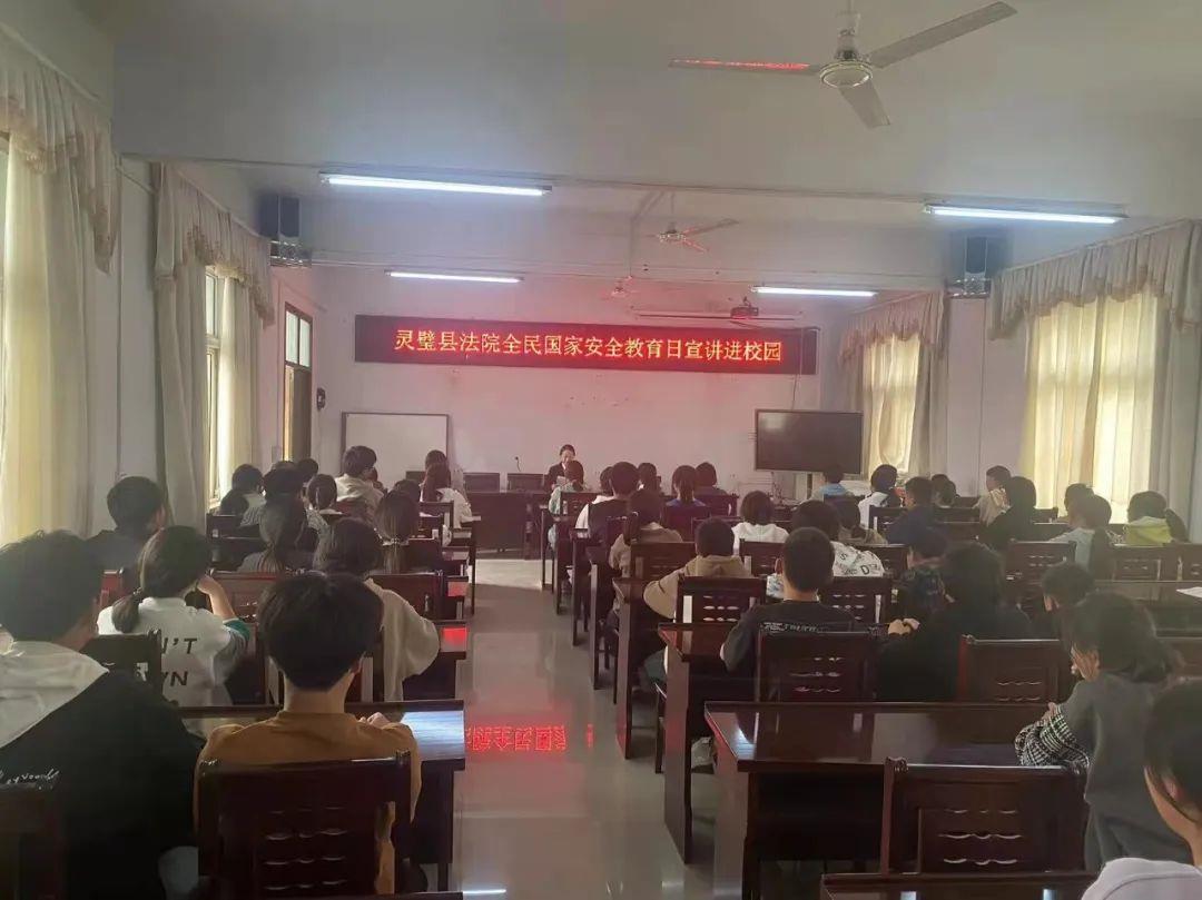 4月12日,灵璧县法院刑庭干警走进灵璧县禅堂中学,结合开学第一堂法治课,开展“全民国家安全教育日”法治宣传进校园活动,为师生上了一堂生动的安全教育普法课。