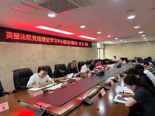 5月23日,灵璧法院召开党组理论学习中心组(扩大)会议,党组书记、院长王世兵主持会议,院党组成员、部门负责人及青年干警代表参加会议。