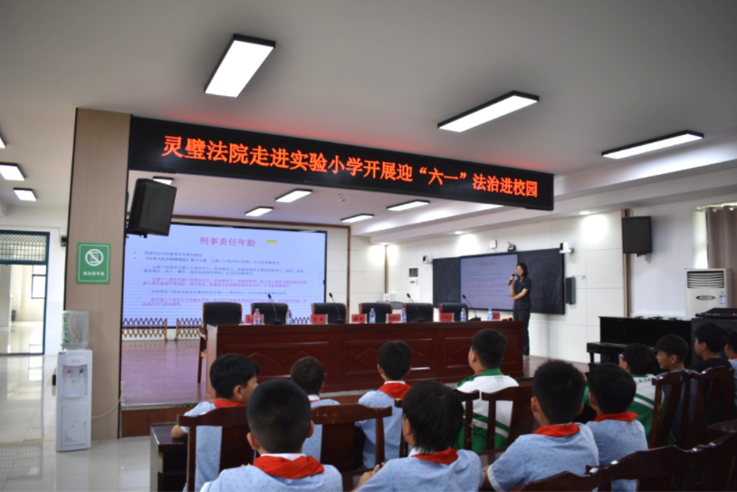 5月31日,灵璧县法院干警走进灵璧县实验小学,通过鲜活的案例、真实的数据、通俗易懂的语言给六年级200余名师生带来一堂生动的法治课。