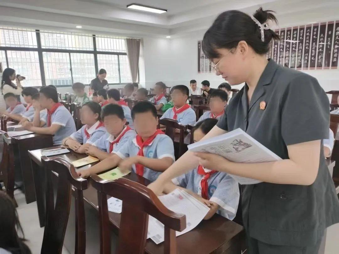 “同学们,你们知道什么是校园欺凌吗?”“我知道,校园欺凌就是几个人围着殴打一个人”“就是在学校欺负同学”……课堂上,干警首先采取互动问答、以案说法等方式,通过真实的数据和案例,向同学们展示校园欺凌的常见种类,以及校园欺凌给受害者学习、心理、社交等方面带来的危害。考虑到学生年龄普遍偏小,课程开始,干警们根据小学生的年龄特点,从与未成年人相关的法律入手,精心挑选了与同学们生活学习息息相关的典型案例,通过一个个小故事让学生们在故事中学习了法律知识——“遇到校园欺凌的时候我们应该怎么做?”“我来!我来!”在互动环节,学生们踊跃进行发言,干警也耐心解答了学生们提出的问题,课堂氛围融洽热烈。