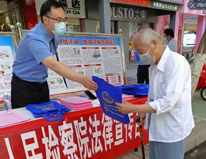 为预防和打击养老诈骗犯罪活动,守好老年人的养老钱,6月7日上午,灵璧县人民检察院组织干警在灵城镇隅顶口开展打击整治养老诈骗法律宣传活动。