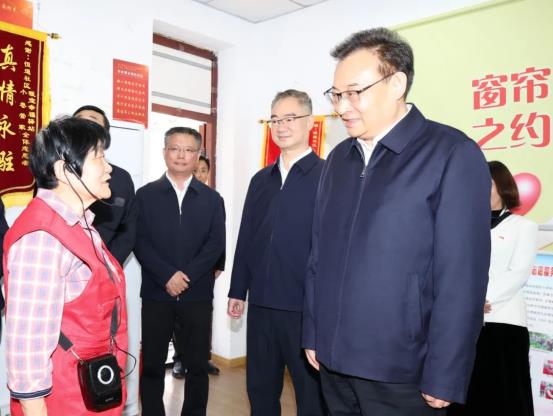 4月14日上午,省委书记梁言顺、省长王清宪一行来到暖宝幸福驿站,与由老党员组成的“暖宝”志愿者代表、82岁高龄的郝素云亲切攀谈。