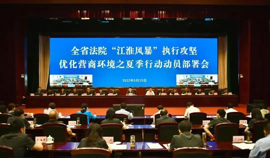 会议指出,法治是营商环境的重要组成部分,执行工作在优化营商环境中具有独特的、不可替代的作用。开展“江淮风暴”执行攻坚优化营商环境之夏季行动,是贯彻落实党中央及省委关于优化营商环境的部署要求,对标营商环境评价指标,不断提升执行质效,推动我省营商环境持续向优向好的重要举措。全省法院要充分认识开展这次专项行动的重要性必要性,切实增强思想自觉和行动自觉,再掀“江淮风暴”执行攻坚新高潮,为我省创建一流营商环境提供有力司法支持和司法保障。