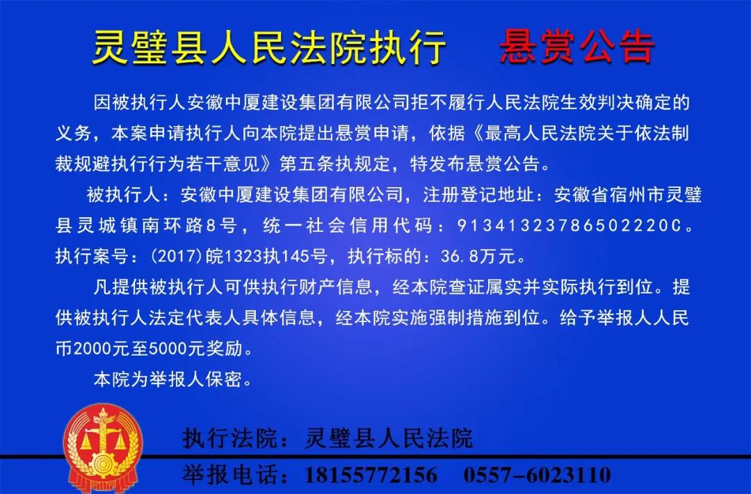 合法快速赚钱的机会来了!灵璧县法院悬赏公告又来了!