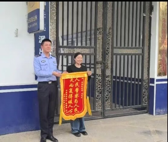 国庆期间,朱集派出所民警刘思凯辗转上千里将辖区姜女士被盗财物追回。10月5日上午,姜女士夫妻二人来到派出所将一面锦旗送到办案民警手中。姜女士说:“这份失而复得的安心,不仅是财物的回归,更让我感受到了人民警察的担当。”