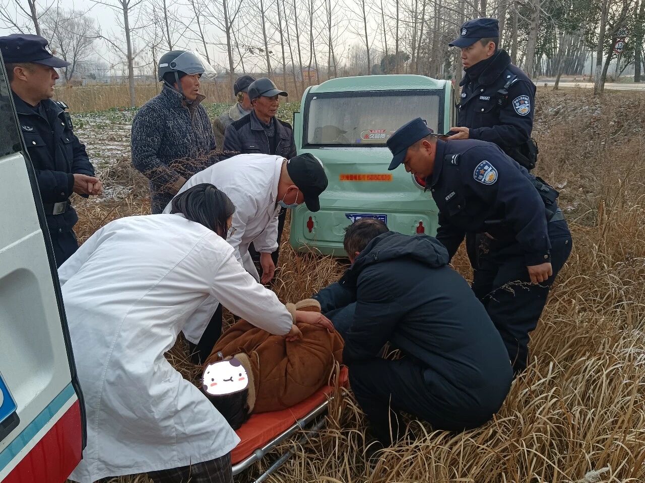 “警察同志,快来!有三轮车翻入沟内了,还有人被困!”1月1日8时许,大庙派出所接到一起群众求助警情后,值班民警迅速组织警力赶赴现场开展救援,并协助120将伤者送医。随后,民警联合附近群众,合力将三轮车拖拽上岸。