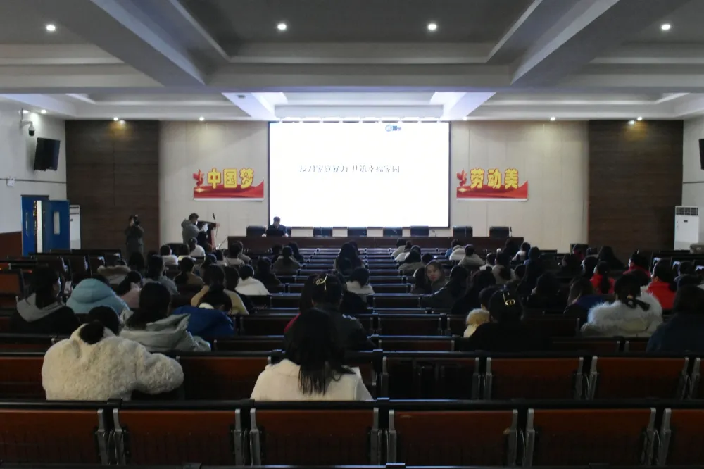 今天是国家反家暴日,为提高女职工的法律意识与自我保护意识,倡导全社会共同反对家庭暴力,助力我县文明城市创建。11月24日下午,灵璧县法院干警朱雨寒到灵璧县高级职业技术学校开展题为《反对家庭暴力 共筑幸福家园》的法律知识讲座,全校近200名女教职工认真聆听了座。