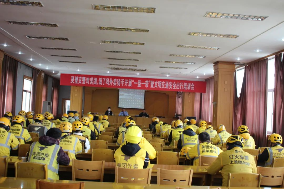 近日,灵璧交警针对美团、饿了么骑手开展“一盔一带”暨文明交通安全出行培训会。宣传民警通过播放电动自行车事故案例视频向骑手们讲解了车辆乱停乱放、骑乘电动自行车不戴安全头盔、逆向行驶、骑行接打电话、闯红灯等交通违法行为存在的严重危害性,提醒骑手不能为了提高业绩而忽视交通规则。