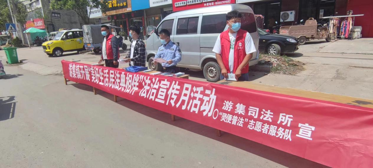 5月是第二个“民法典宣传月”,为了广泛开展民法典普法工作,2022年5月26日,灵璧县游集司法所携手“灵便普法”志愿者服务队在游集镇街道开展“美好生活 民法典相伴” 法治宣传月活动,切实提高辖区群众的法治思维、法治意识。