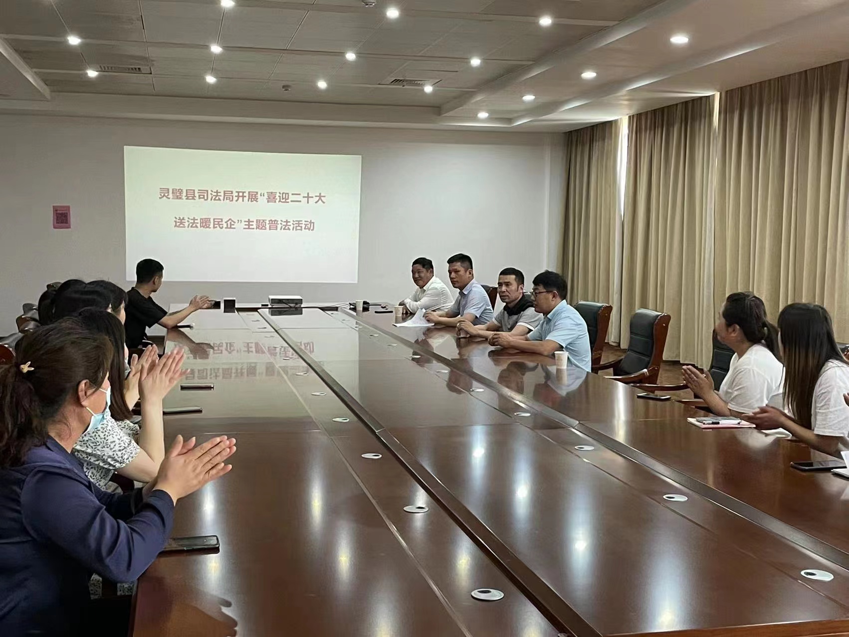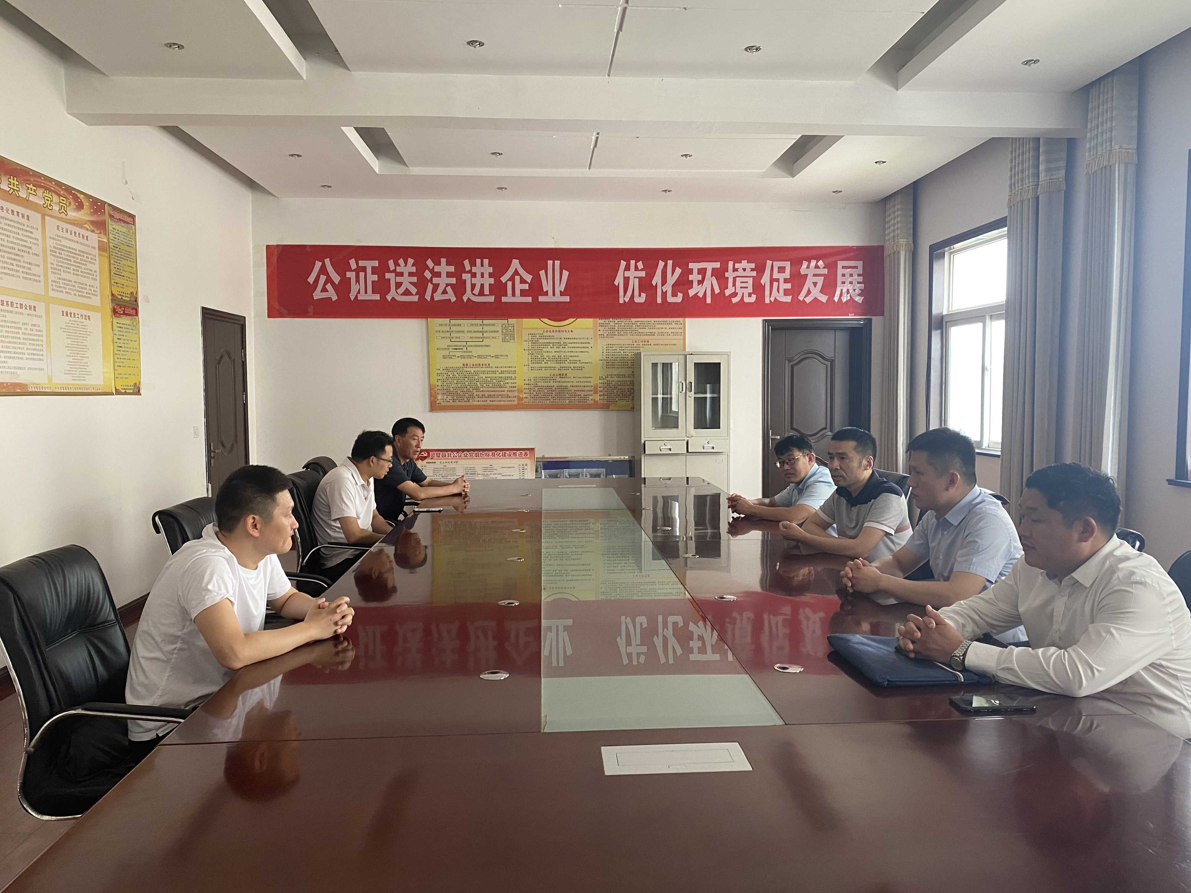 在企业普法期间,灵璧县司法局公证处党支部书记姜涛首先与企业管理层人员进行了深入座谈,姜涛介绍了司法行政部门的主要职能,并表示此次“喜迎二十大,送法暖民企”活动,是对践行为企业优环境、为群众办实事的具体行动。希望企业直言困难,提出需求,指出痛点,促进政府职能部门精准发力,更好地为企业打通堵点,解决难点,优化营商环境。企业负责人纷纷表示对灵璧县司法局公证处党支部书记姜涛、法律援助中心负责人刘传庭的到来表示热烈欢迎,并围绕企业的发展理念,下一步努力方向和存在的瓶颈问题在座谈中进行了交流。
