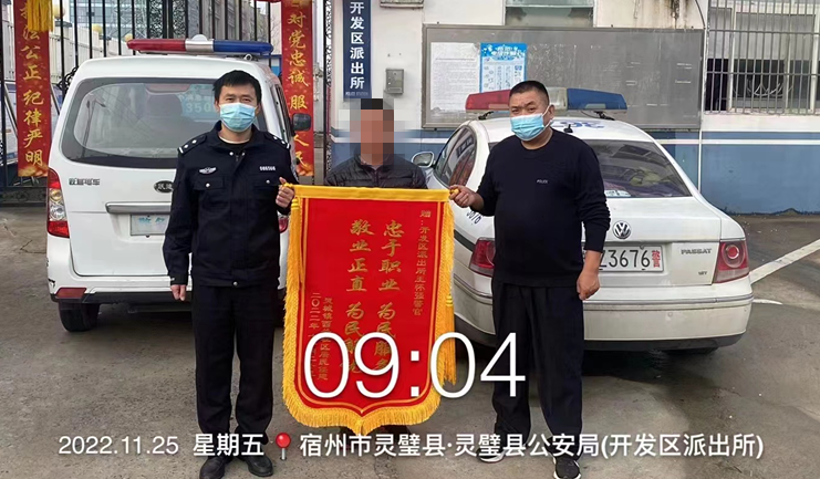 2022年7月12日,开发区派出所接到群众任某报警,称工友魏某骗走其9300元后潜逃,不知所踪。在合肥警方的协助下,开发区派出所民警于11月9日将嫌疑人魏某抓获带回,追回任某全部被骗资金,任某锦旗致谢。