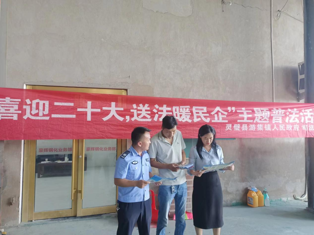 法治是最好的营商环境,为强化民营企业法治宣传,培育民营企业法治文化,推动法治民企建设,促使民企依法保护合法权益。9月5日,灵璧县游集镇优化营商环境办公室联合游集镇司法所共同开展“喜迎二十大 送法暖民企”法治宣传活动。