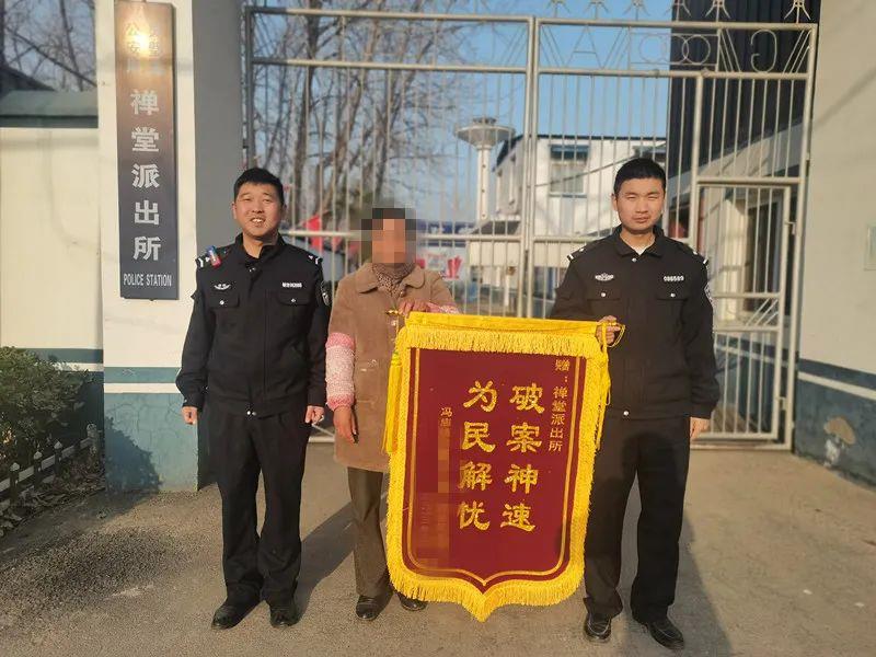 “请问刘超警官在吗......”,3月6日一大早,冯庙镇彭女士手捧一面锦旗来到了禅堂派出所,点名要见民警刘超。