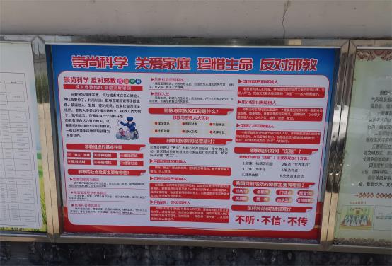 通过反邪教宣传栏的设立,进一步增加了反邪教宣传的覆盖面,为“平安娄庄”打下了坚实的基础。