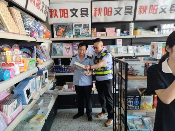 检查组先后对中小学校园周边书店、文具店、打字复印店等9个点位进行检查。