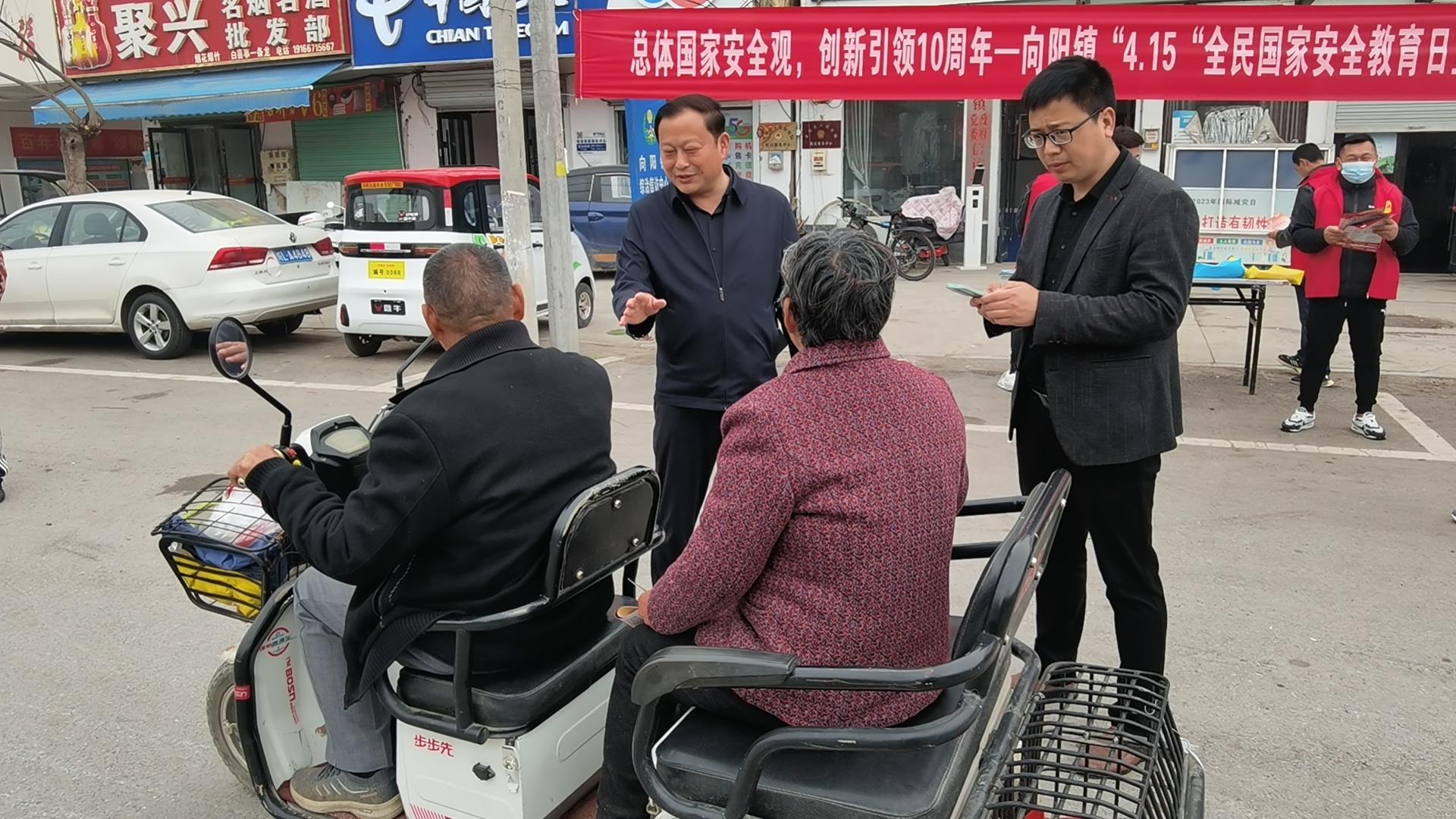 开展法律法规集中普法宣传。4月15日,普法志愿者们利用向阳镇逢集时机,在街区通过发放宣传手册向群众宣传《中华人民共和国国家安全法》《反分裂国家法》《中华人民共和国反间谍法》等关于国家安全的法律内容,以面对面的方式解答群众的疑虑,哪些是危害国家安全的行为、应当承担什么样的责任、怎样依法维护国家安全。