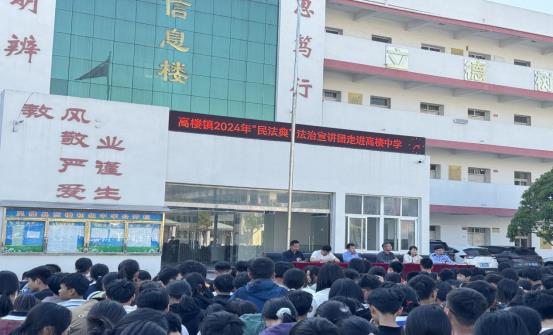 为进一步加强未成年人法治教育,增强未成年人法律意识和自我保护能力,促进平安高楼建设,5月8日下午,高楼镇团委、镇司法所、镇妇联一行来到高楼中学,为1400多名师生带去了以“以法育人,护未成长”为主题的民法典法治宣讲。