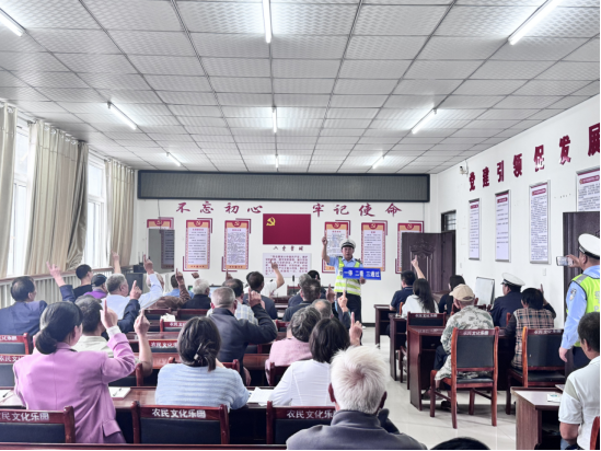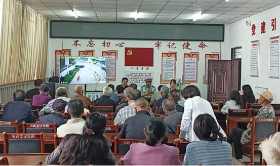 宣讲会在虞姬村村民委员会会议室举行,结合农村出行特点,以周边地区真实交通事故案例为切入点,通过视频、图片等直观形式,详细释解了农村地区高发的 “电动三(四)轮车违法载人”“骑乘车辆不戴安全头盔”“农用车违法上路”“行人横穿马路” 等交通违法行为。
